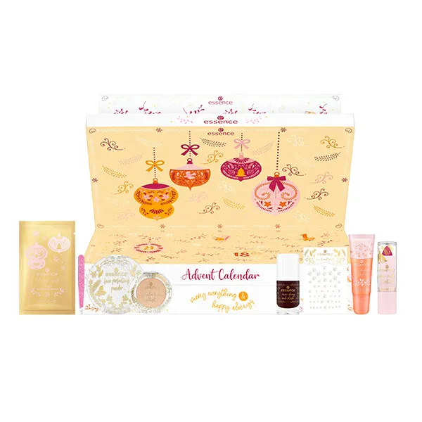 En el calendario de adviento edición limitada de essence, 24 momentos felices esperan ser descubiertos: 21 productos de tamaño completo y 3 esmaltes de uñas en un formato mini.